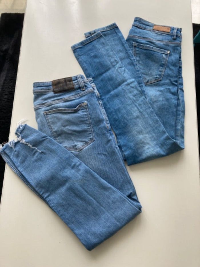 Lot de 2 jeans destroy 1 de marque Zara et 1 de marque LFT Denim Taille 38/M En bon état mais il y a quelques taches peu visibles sur 1 jambe à l’arrière sur le Zara et 1 tache peu visible à l’arrière du LFT Denim