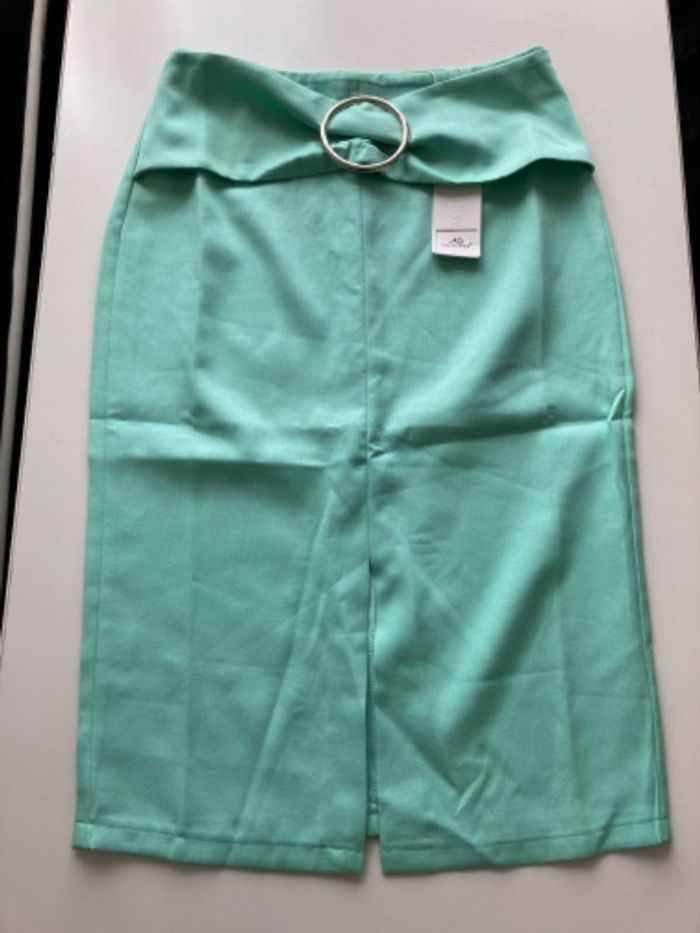 Jupe mi longue Fendue sur le devant Taille 38/M, étiquetté L mais taille petit Taille à plat 38 cm Longueur 70 cm Neuve avec étiquette