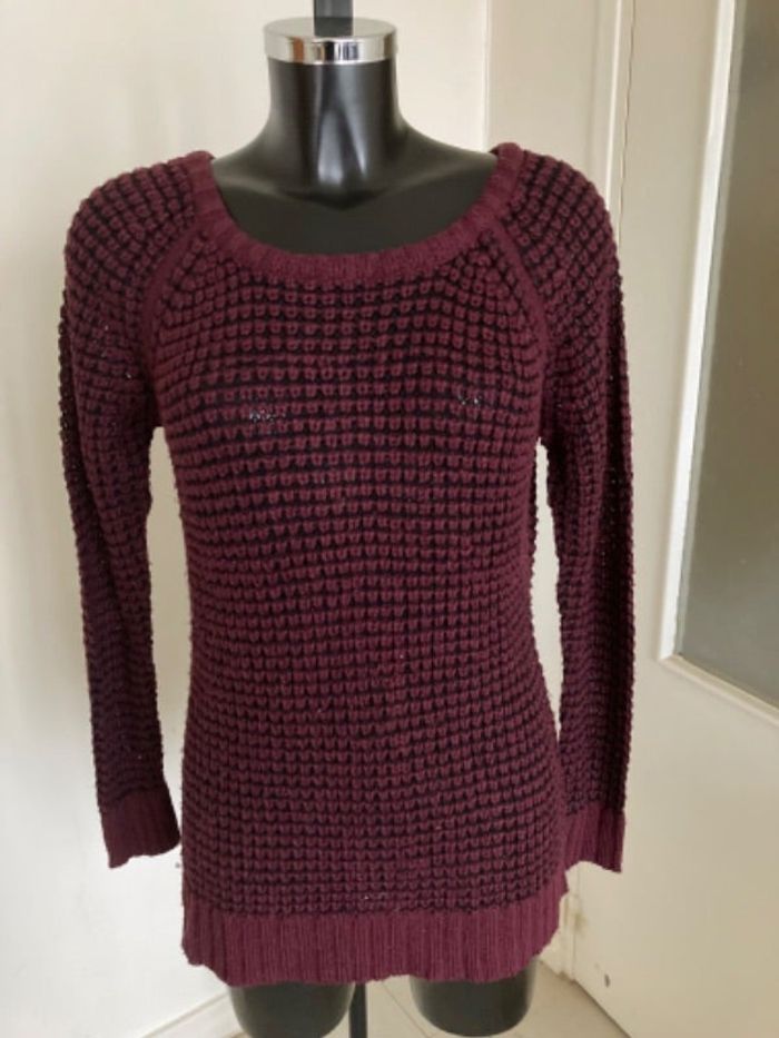 Pull mailles aérées Le pull est plus ou moins transparent Marque Ada Gatti Taille 38/M En très bon état excepté un accroc sur le bas du pull (voir photo)