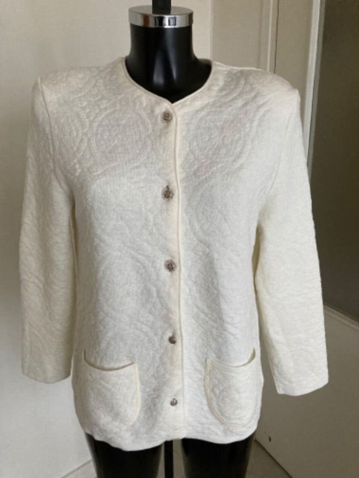 Gilet cardigan vintage Taille 38/40, il n’y a pas l’étiquette de taille En très bon état mais quelques petites tâches peu visibles et il manque une partie des 2 derniers boutons