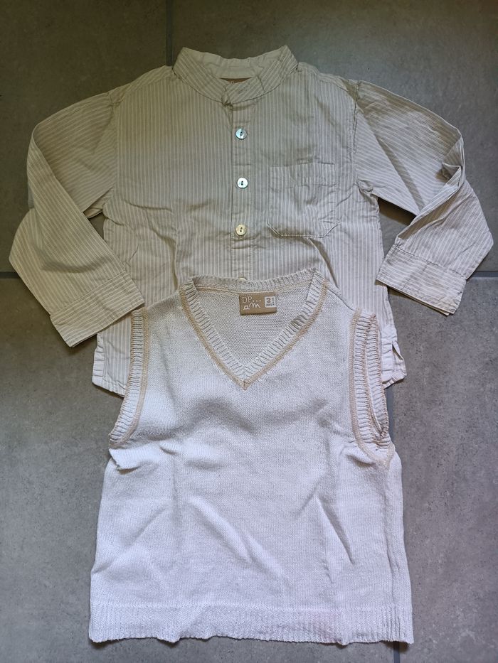 Ensemble 2 pièces. Chemise à rayures col mao et pull sans manches. Je peux les vendre séparément.