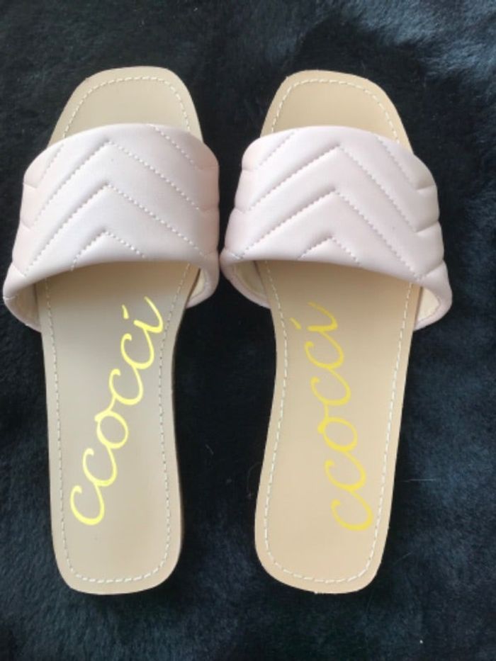 Claquettes roses Pointure 38,5 La pointure est en pointure US, il y a marqué 8 sous la chaussure et correspond à un 38,5 Neuves