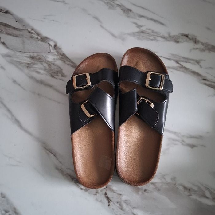 Paire de sandales confortables, parfaites pour l'été. Elles présentent une semelle intérieure profilée et des brides réglables avec des boucles dorées. Neuf sans étiquette jamais porté.