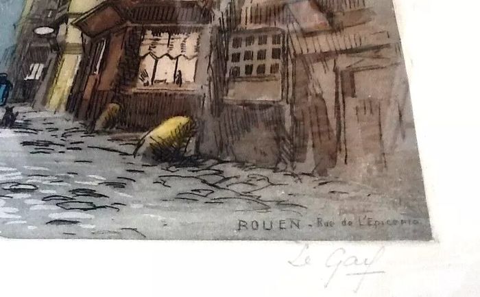 Legarf (Lucien Veder) Eau-forte colorée  Rouen  Rue de l' Epicerie - photo numéro 7