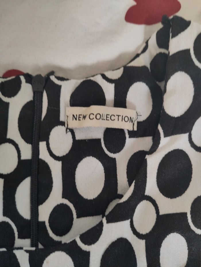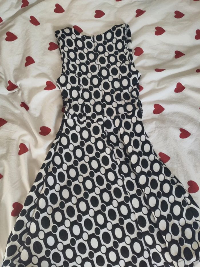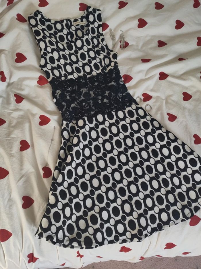 Robe coquette noire et blanche à motifs. Dentelle devant. Aucune taille n'est marquée, mais elle taille 12ans.