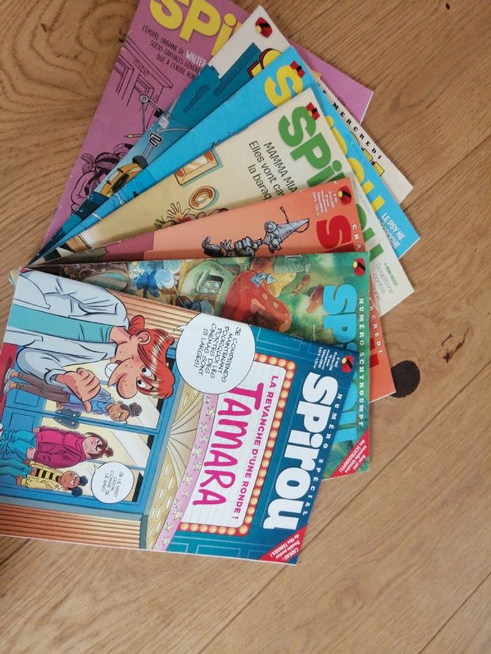 Lot de 7 magazines Spirou, dont un numéro schtroumpfs, et un numéro spécial.
