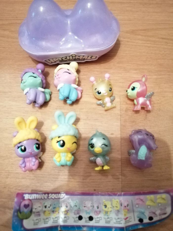 Lot de 8 hatchimals dont 4 de la série bunwee squad. Notice abîmée.