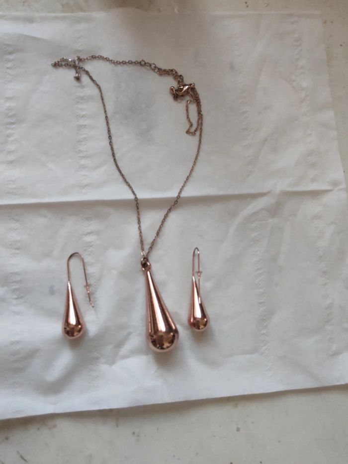 Ensemble boucle d'oreilles pendentif chaîne