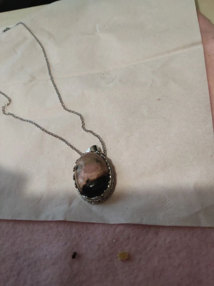 Pendentif pierre rhodonite avec chaîne 50 cm