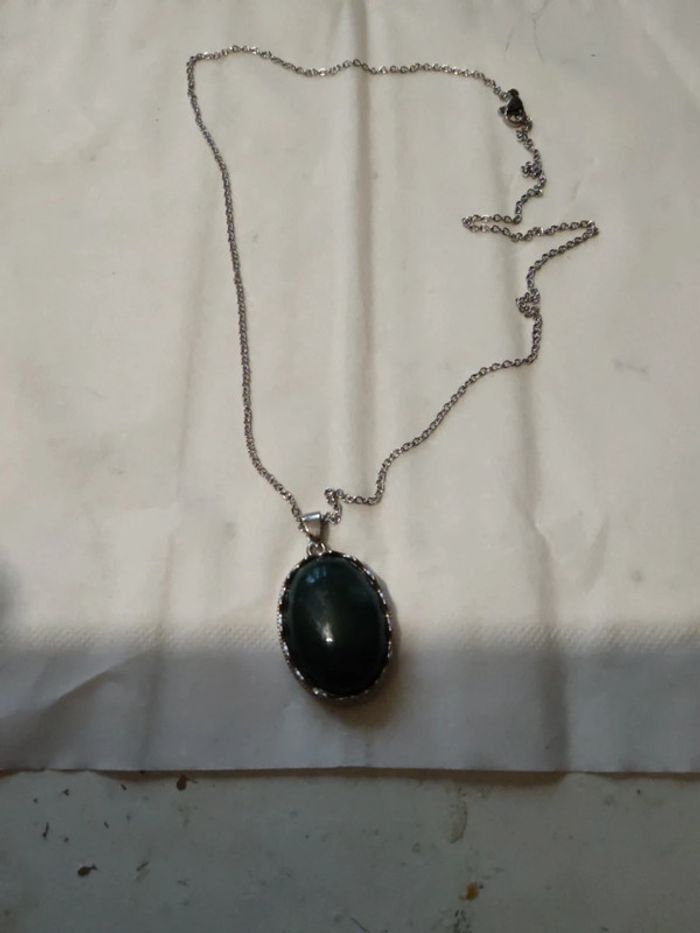 Pendentif pierre obsidienne avec chaîne - photo numéro 1