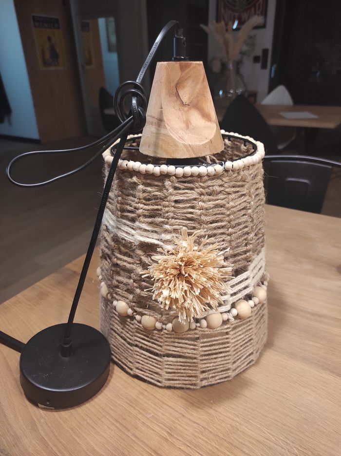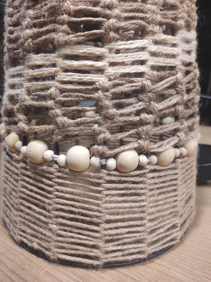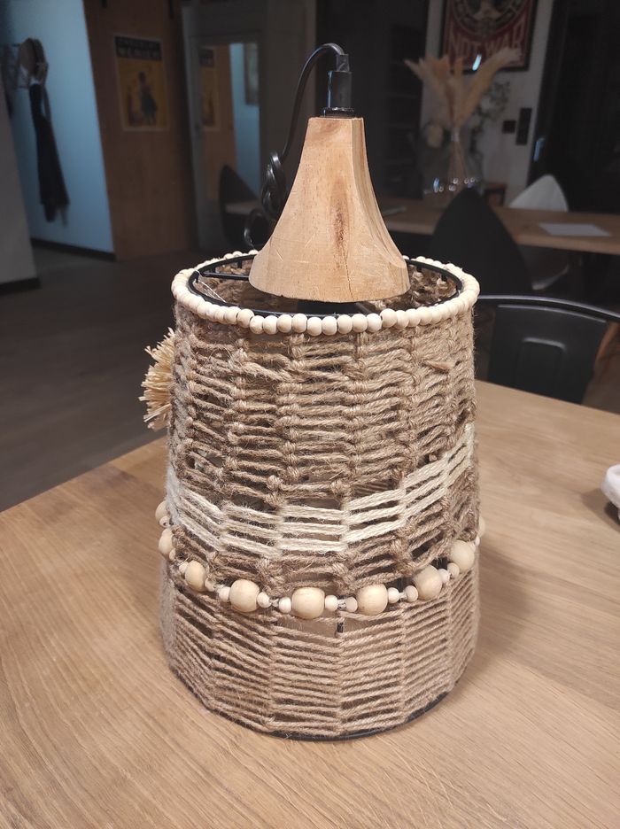 Suspension faite main en jute. Perles en bois