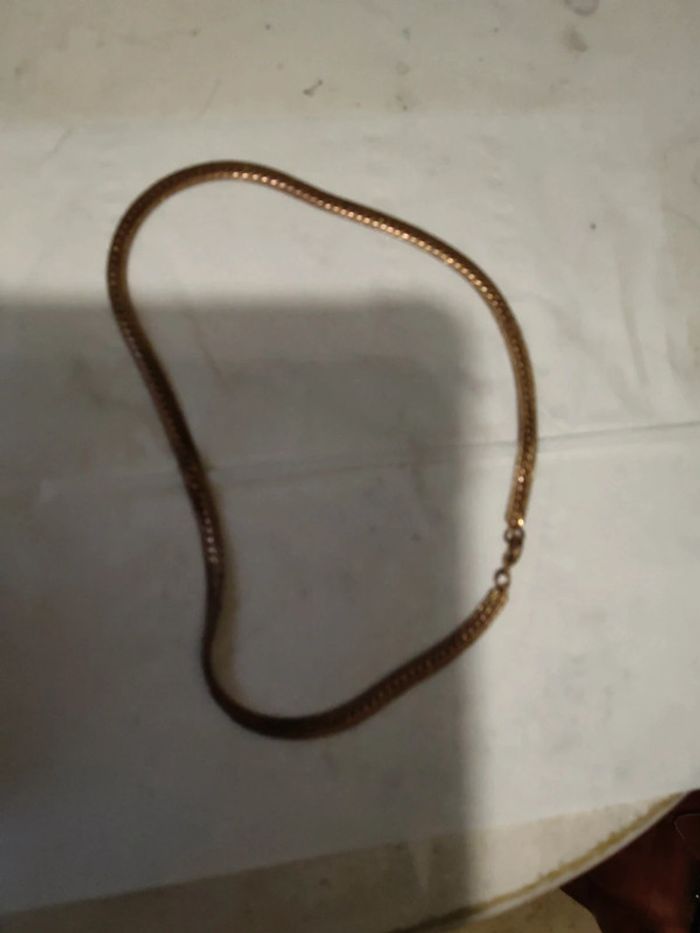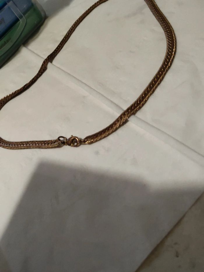 Collier grosse maille je connais pas la matière mais ne noircit pas du tout très jolie