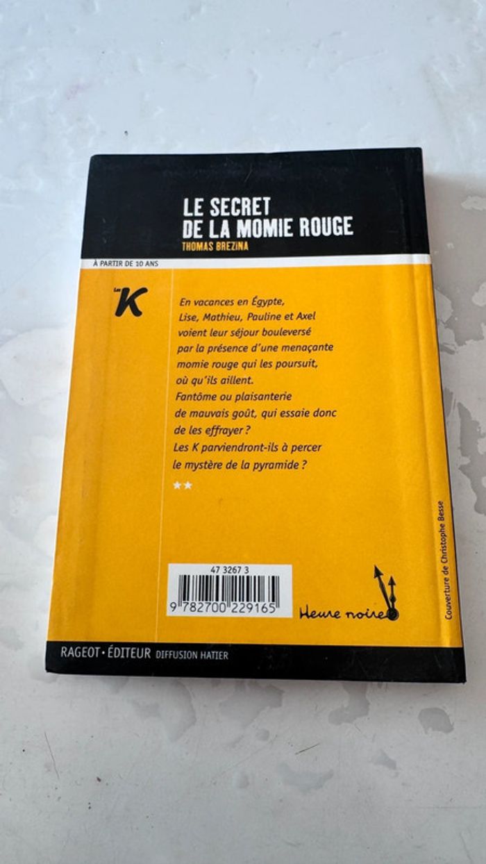 Plongez dans une aventure palpitante avec Le secret de la momie rouge, un roman captivant de Thomas Brezina, publié dans la collection « Heure Noire » chez Rageot Éditeur. Parfait pour les jeunes lecteurs amateurs de mystères et d’énigmes, ce livre les entraînera dans une exploration inquiétante au cœur d’une pyramide pleine de secrets… L’exemplaire est en bon état général : la couverture est propre et les pages bien conservées. Aucun manque. Une belle opportunité pour enrichir votre collection ou offrir un moment de lecture frissonnant à un jeune curieux. État : Bon état Langue : Français Éditeur : Rageot Collection : Heure Noire Envoi rapide et soigné. N’hésitez pas à consulter mes autres annonces pour grouper vos achats ! ⸻ #LivreJeunesse #HeureNoire #ThomasBrezina #Suspense #LectureMystère #LivreOccasion #CollectionHeureNoire #RomanJeunesse #LeSecretDeLaMomieRouge #RageotÉditeur #VintedLivres #LectureEnfant