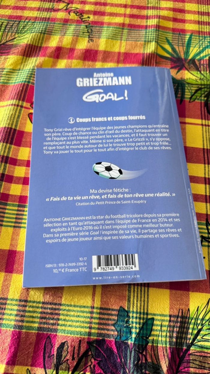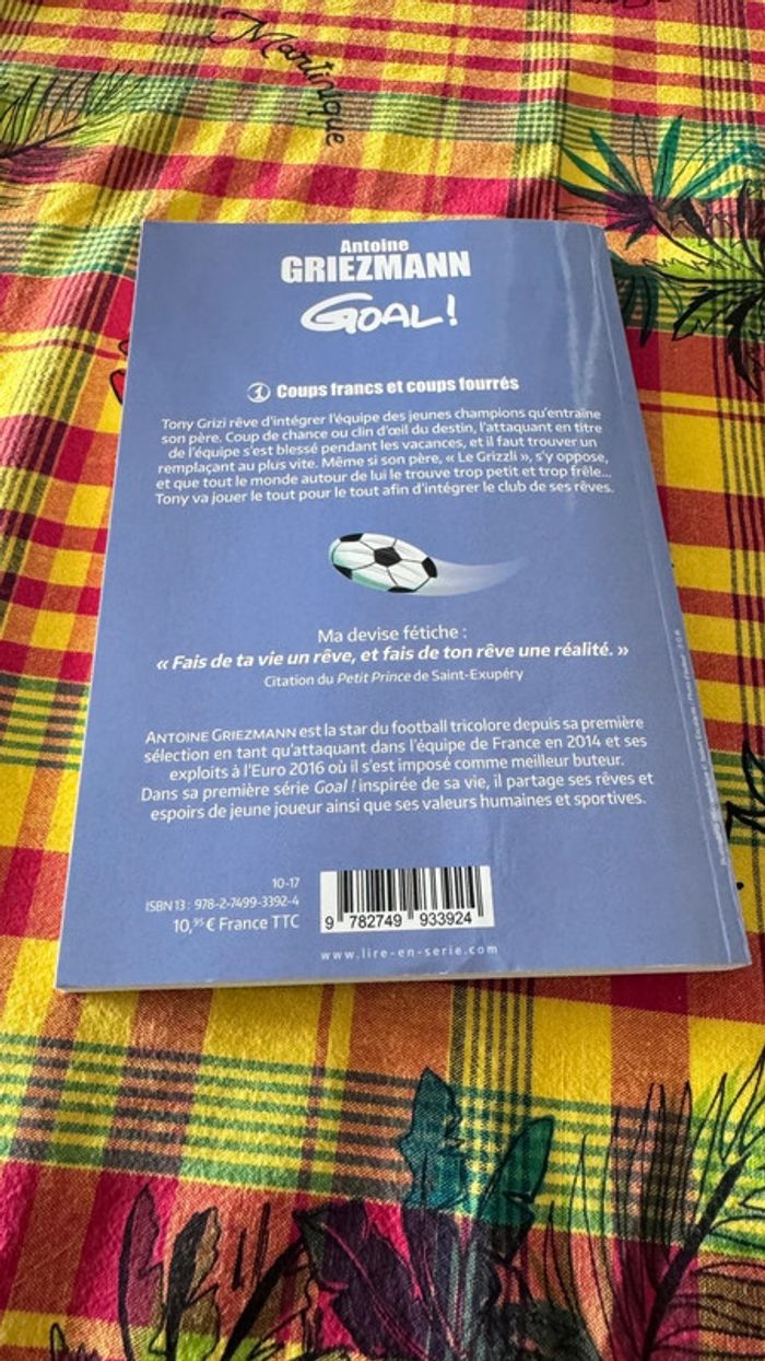 Plongez dans l’univers passionnant du football avec Goal !, le premier tome de la série imaginée par la star des Bleus, Antoine Griezmann. Ce livre suit les aventures de Tony Grizi, un jeune passionné de ballon rond, prêt à tout pour réaliser son rêve : intégrer l’équipe des jeunes champions. Une histoire inspirante, rythmée par des défis, des valeurs sportives fortes, et la détermination d’un héros qui vous rappellera qu’avec du courage, tout est possible. État : bon état général Parfait pour : les jeunes passionnés de sport, les lecteurs dès 9 ans, ou les fans d’Antoine Griezmann. Éditeur : Michel Lafon ⸻ #GoalTome1 #AntoineGriezmann #LivreJeunesse #RomanFoot #HistoireInspirante #LectureSportive #FanDeFoot #Griezmann #CollectionMaVieEnSérie #MichelLafon #LecturePassion #LivreGarçon #AventureJeune