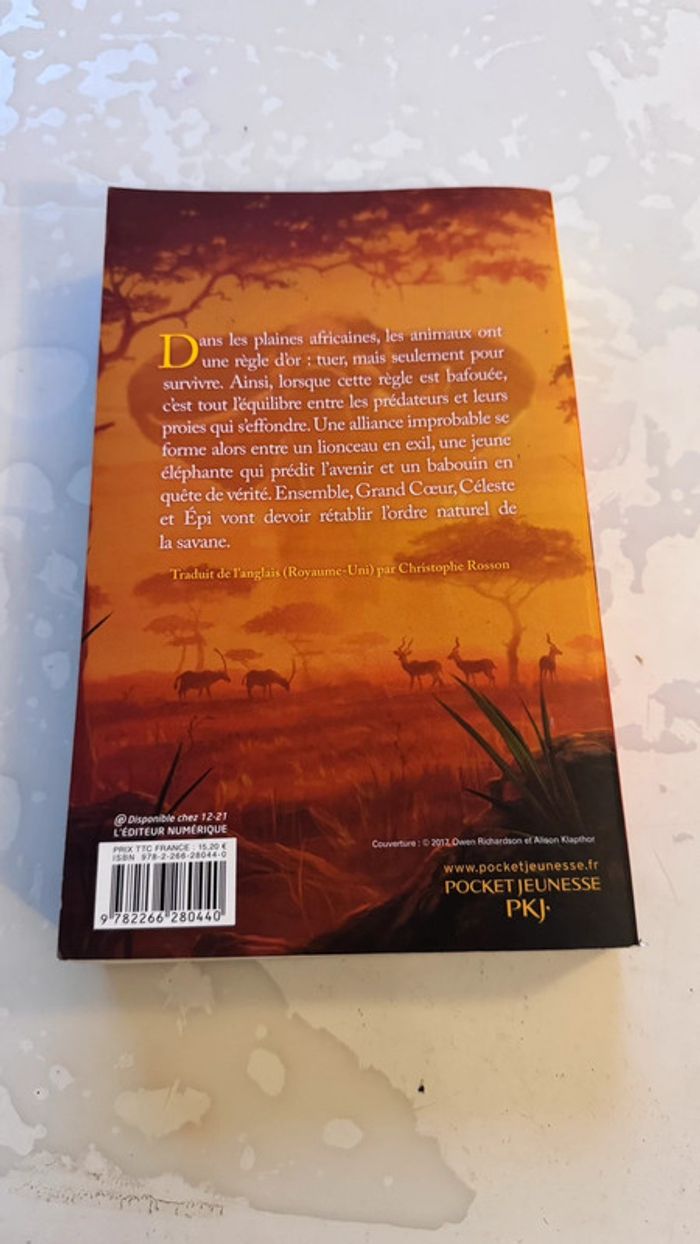 Découvrez une aventure palpitante au cœur de la savane africaine avec Bravelands – Nouvelle Alliance, une œuvre signée Erin Hunter, l’autrice de la célèbre série La guerre des Clans. Plongez dans un monde sauvage où les animaux doivent respecter une règle sacrée pour survivre. Mais quand l’équilibre est rompu, un lionceau en exil, une éléphante prophète et un babouin rebelle vont s’unir pour défendre l’ordre naturel… Ce que vous aimerez : • État comme neuf, pages impeccables • Un récit fort, émouvant, accessible dès 10 ans • Couverture souple au design vibrant • Traduction fluide par Christophe Rosson • Parfait pour les jeunes lecteurs passionnés d’animaux, de nature et de quêtes initiatiques Envoi rapide et soigné. Possibilité de lot si vous achetez plusieurs livres. ⸻ #Bravelands #ErinHunter #LaGuerreDesClans #RomanJeunesse #AventureAnimalière #LectureAddictive #LivreNeuf #Savane #NatureEtAventure #VintedLivres #LecturePassion #PKJ #RomanÀLire