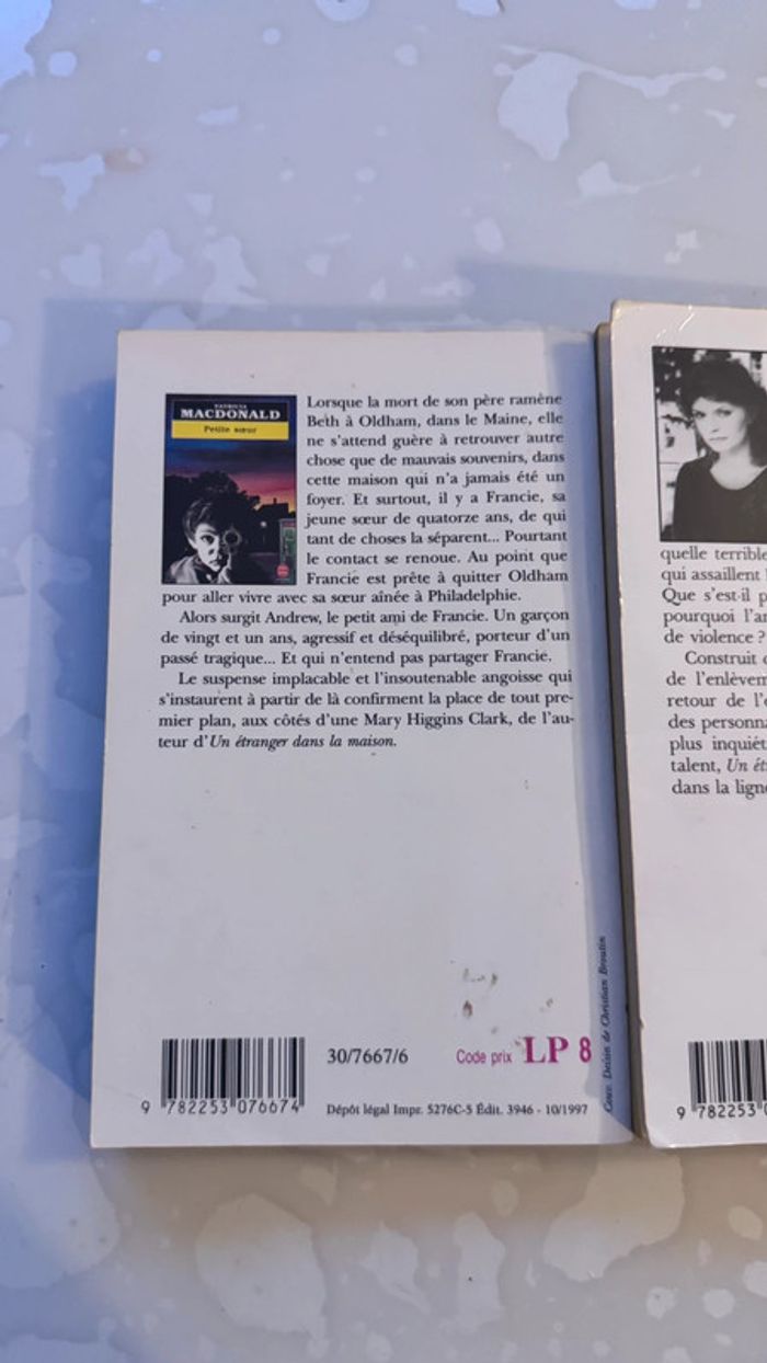 Vous êtes amateur·rice de thrillers haletants ? Ce lot est fait pour vous ! Retrouvez trois intrigues captivantes signées Patricia MacDonald, la reine du suspense psychologique : • Petite sœur • Un étranger dans la maison • Une femme sous surveillance Livres en bon état général (voir photos), parfaits pour vos soirées lecture pleines de tension ! Profitez de ce lot à prix mini pour compléter votre collection ou découvrir cette autrice incontournable du polar américain. Envoi rapide et soigné. #Thriller #Polar #Suspense #PatriciaMacDonald #LectureAddict #LivreOccasion #BonPlanLivres #RomansPoliciers #VintedBooks #LecturesPassionnantes