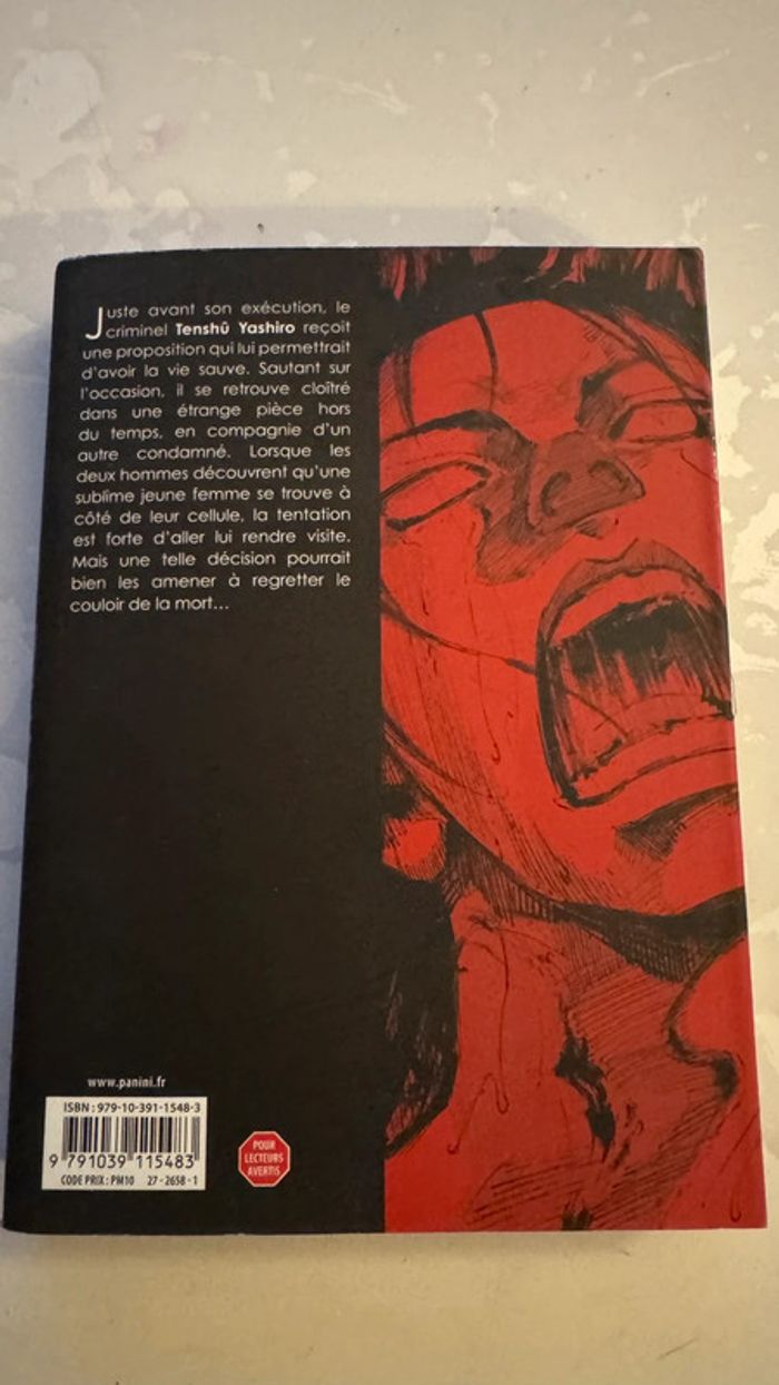 🖋️ Auteur : Tsutomu Takahashi 📌 Éditeur : Panini Manga 🔞 Pour lecteurs avertis 📦 État : Bon état général – coin inférieur de la couverture légèrement abîmé (voir photos) 🔍 Résumé : Juste avant son exécution, le criminel Tenshū Yashiro reçoit une offre inattendue qui pourrait lui sauver la vie. Enfermé dans une pièce étrange avec un autre condamné, il découvre qu’une mystérieuse jeune femme se trouve dans la cellule voisine. La tentation est grande… mais les conséquences pourraient être bien pires que la mort elle-même. Un thriller psychologique intense, sombre et captivant, signé par l’auteur de Sky High et Jiraishin. 📖 Manga rare et recherché, parfait pour les amateurs de récits adultes et de tensions psychologiques. Une œuvre incontournable de Tsutomu Takahashi ! 📸 N’hésitez pas à consulter les photos pour constater l’état réel de l’article. ⸻ 🎯 #MangaThriller #TsutomuTakahashi #MangaSeinen #PaniniManga #MangaRare #CollectionManga #AliveManga #MangaPsychologique #LecteursAvertis #MangaOccasion #VenteManga