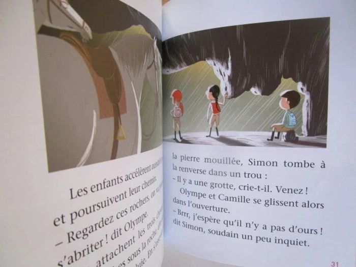 "Olympe exerce une pression sur son cheval pour avancer au trot, mais Zénith ne bouge pas. - Toi et moi, on n'est décidément pas copains, lance Olympe." Avant la parade royale de Versailles, Olympe et ses amis prennent des cours d'équitation. Mais catastrophe ! La princesse et son cheval ne s'entendent pas du tout. Parviendra-t-elle quand même à participer au défilé ? Olympe La princesse rêve d'aventure, adore les macarons, ses copains, sa souris, et un peu commander son monde ! Nanny La nounou anglaise d'Olympe s'inquiète toujours pour elle, mais ne peut rien lui refuser. Camille Olympe a beau se moquer souvent de son côté "Miss je-sais-tout", elle ne peut se passer d'elle. Hubert Le très sérieux professeur particulier d'Olympe est un grand froussard. Simon Ce rêveur s'imagine en prince charmant d'Olympe. Il ne se sépare jamais de son petit chien, Bonaparte. Robert Le grand-père de Simon vit avec lui sur une péniche. Éditeur ‏ : ‎ Père Castor 47 pages Âge de lecture ‏ : ‎ 6 - 8 ans Dimensions ‏ : ‎ 13.8 x 0.3 x 18 cm Livre en très bon état Je vends d'autres livres de la même collection #phil_peg_princesseolympe #cheval #cavalière #princesseolympe