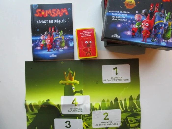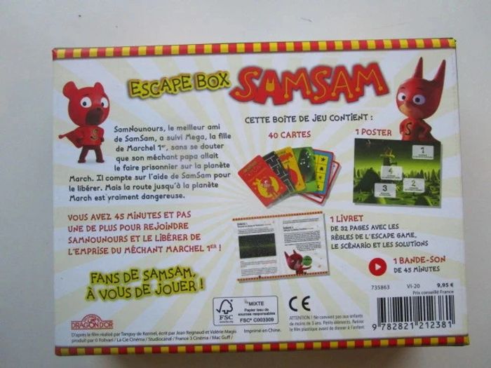 Un escape game pour se plonger dans l'univers de SamSam à la maison ! SamNounours, le meilleur ami de SamSam, a suivi Mega, la fille de Marchel 1er, sans se douter que son méchant papa allait le faire prisonnier sur la planète March. Il compte sur l'aide de SamSam pour le libérer. Mais la route jusqu'à la planète March est vraiment dangereuse. Vous avez 45 minutes et pas une de plus pour rejoindre SamNounours et le libérer de l'emprise du méchant Marchel 1er ! Fans de SamSam, à vous de jouer ! Un jeu escape box pour 2 à 5 joueurs de 5 à 7 ans. Jeu NEUF Je vends d'autres jeux #phil_peg_jeuxetjouets ou livres de Samsam #phil_peg_samsam #escapegame #samsam