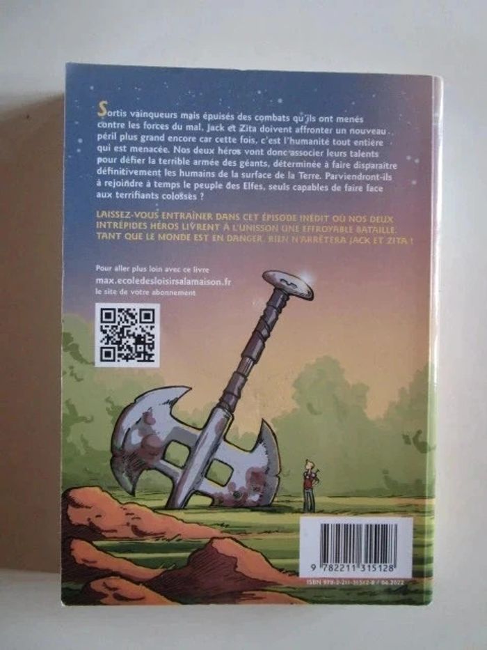 Sortis vainqueurs mais épuisés des combats qu'ils ont menés contre les forces du mal, Jack et Zita doivent affronter un nouveau péril plus grand encore car cette fois, c'est l'humanité toute entière qui est menacée. Nos deux héros vont donc associer leurs talents pour défier la terrible armée des géants, déterminée à faire disparaître définitivement les humains de la surface de la Terre. Parviendront-ils à rejoindre à temps le peuple des Elfes, seuls capables de faire face aux terrifiants colosses ? Éditeur ‏ : ‎ RUE DE SEVRES 272 pages Âge de lecture ‏ : ‎ 8 - 12 ans Dimensions ‏ : ‎ 15.4 x 2 x 21.5 cm Livre en très bon état #phil_peg_ruedesèvres #phil_peg_écoledesloisirs #terre #humanité #géant #combat #elfes #colosses