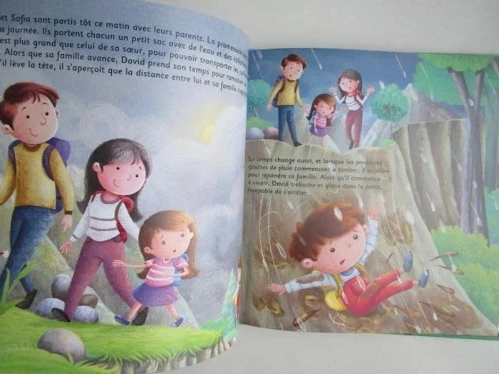 La famille de David vit dans un village entouré de montagnes et de forêts. Certains villageois racontent qu'un gros monstre blanc se cache dans les montagnes. Un jour que David et sa famille partent en randonnée la pluie se met à tomber et David glisse le long d'une grande pente Editeur : Wins Holland Dimensions : 25 x 25 cm Âge : 4 - 7 ans Livre NEUF! #créature #yéti #montagne #forêt