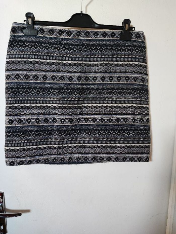 Belle jupe femme Avec motifs Zip a l'arrière Coloris bleu Taille 42 Longueur 45