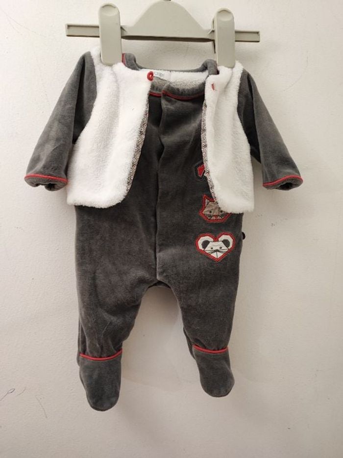 Superbe dors bien bébé 2 en 1 avec son gilet intégré Haut polaire Gris blanc