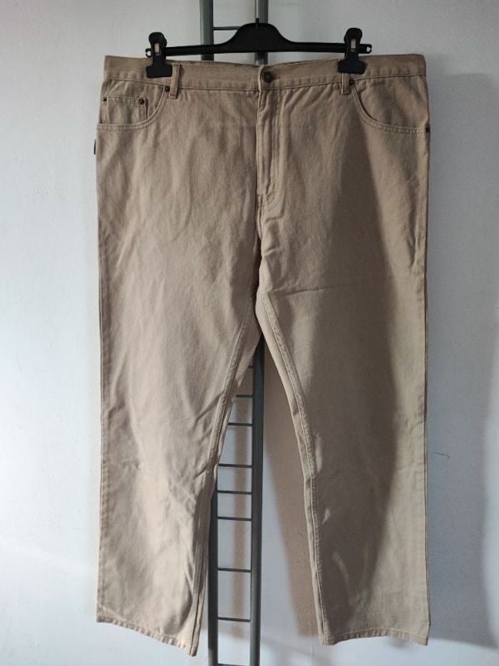 Superbe jean homme Vintage Ample Taille haute Taille 52 Coloris beige Poches avant arrière Taille a plat 52 Longueur 108 Entre-jambes 82 Pied 20