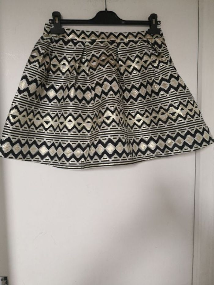 superbe jupe femme (juste pour elle) courte ample légèrement gonflante motifs doré taille L taille à plat 38 longueur 41 très chic pour les sorties