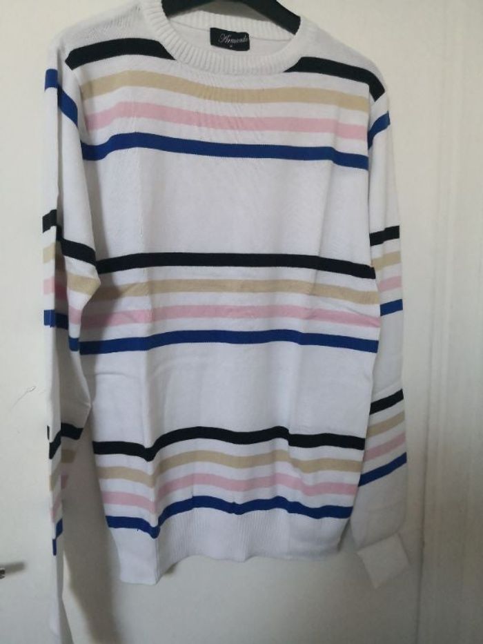beau pull homme col rond à rayures matière coton agréable à porter taille M