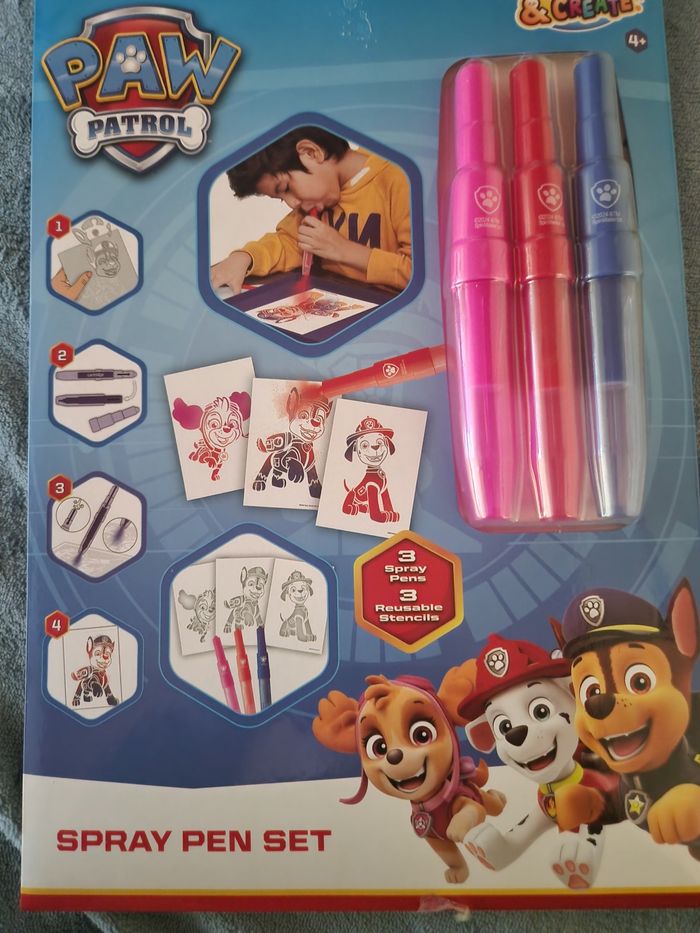 Set de 3 stylo pulvérisateurs  + 3 pochoirs réutilisable paw patrol - photo numéro 1