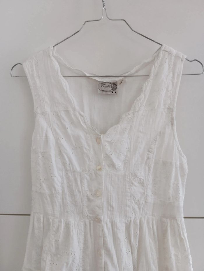 Mini Robe vintage tunique blanche patchs blanc et broderie - photo numéro 11