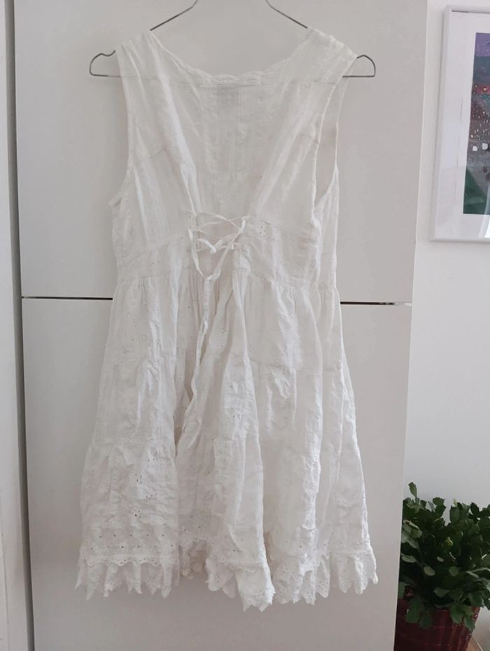 Mini Robe vintage tunique blanche patchs blanc et broderie - photo numéro 8