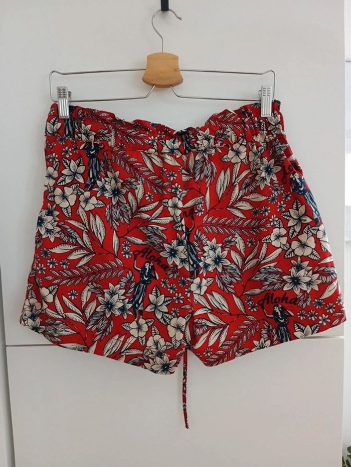 Short rouge à fleurs Aloha Monoprix taille 40 - photo numéro 1