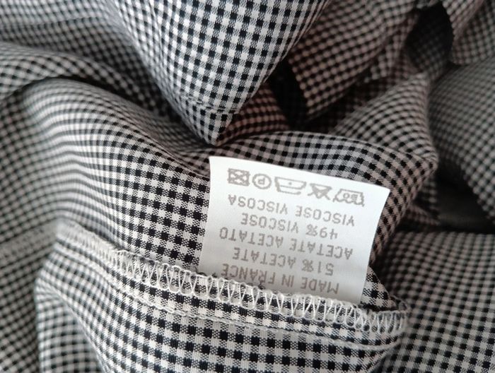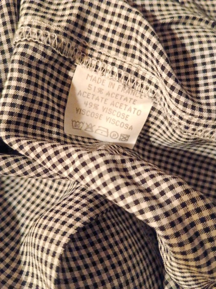Robe vichy vintage , Made in France 51% acétate 49% viscose Fermeture dos Bas boutonné. Fabriquée en France Taille 44 indiquée mais convient plutôt à 42, à confirmer avec les mesures Epaules 42cm Aisselles 50cm Taille 41cm Longueur 122cm