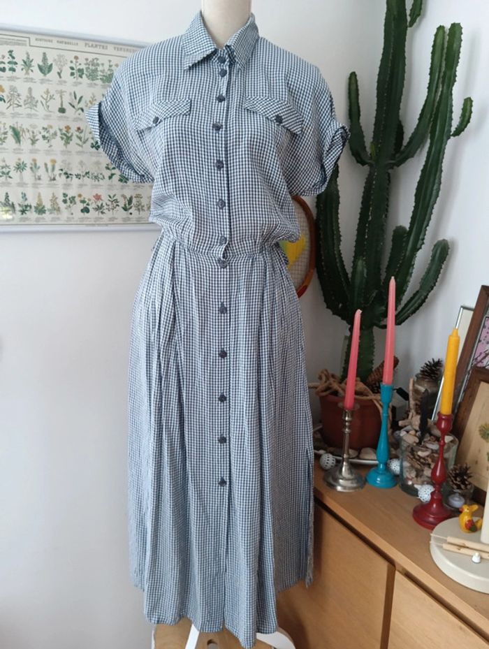Robe vintage longue Boutonnée vichy taille 38 - photo numéro 2