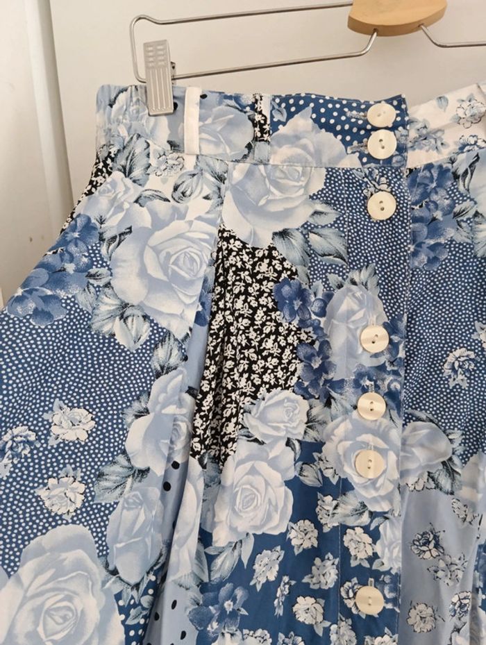 Jupe vintage imprimé patchwork bleu - photo numéro 2