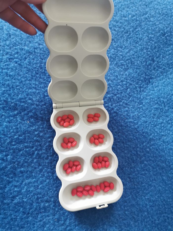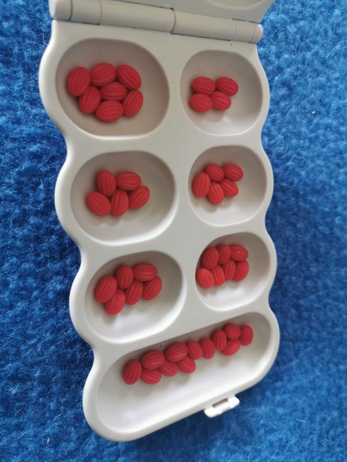 Jeu de poche Mancala vintage. Mancala est un jeu traditionnel, d’origine africain, celui-ci est en plastique avec les graines en plastique en nombre de 45 pièces, taille du jeu fermé fait 18x10x3 cm, poids 151g.