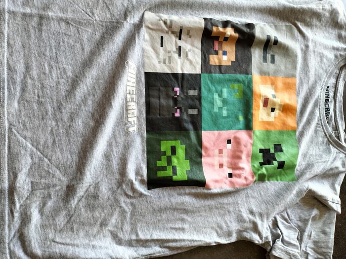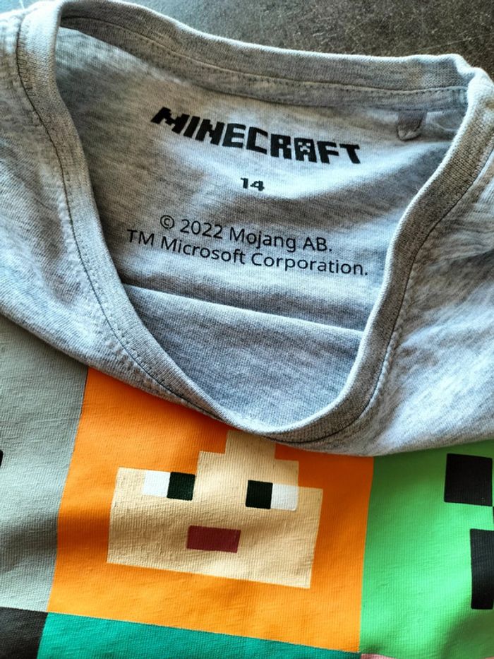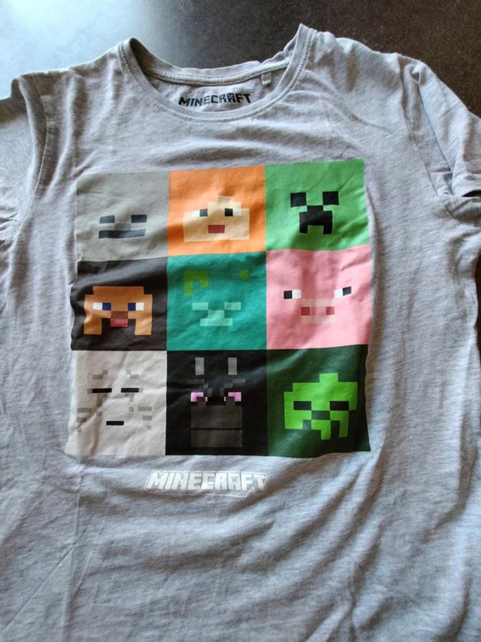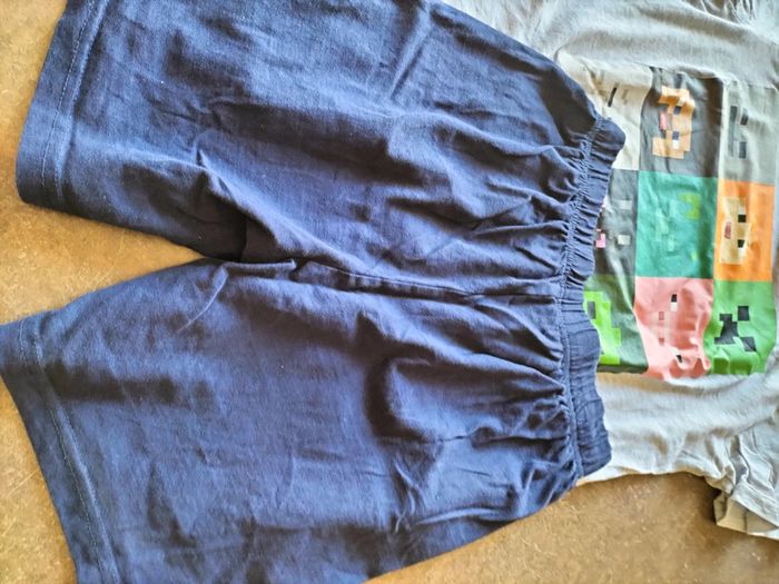 Pyjama 2 pièces en 14 ans Short marine taille élastiquée T-shirt MC gris clair imprimé sur le devant Minecraft En très bon état Prix ferme