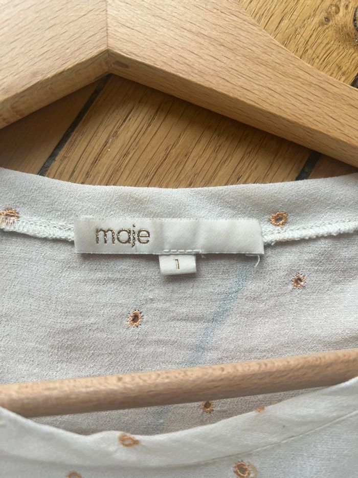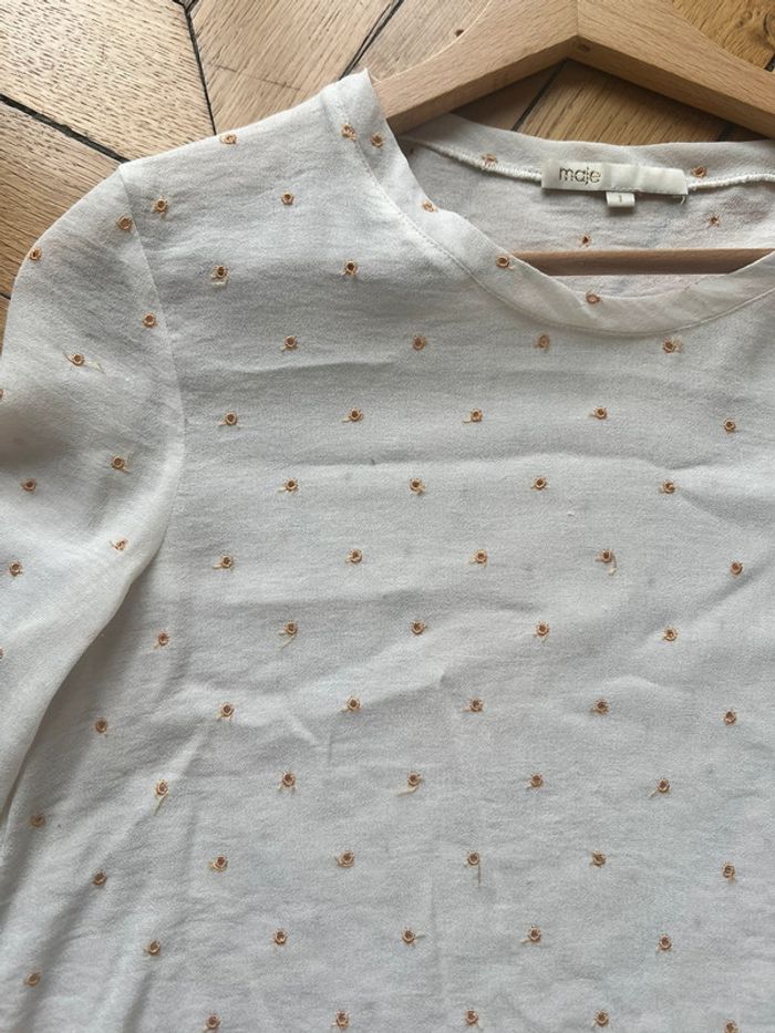 Blouse écru Maje T1 Details pois orange Excellent état Col rond Légère