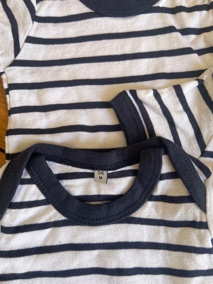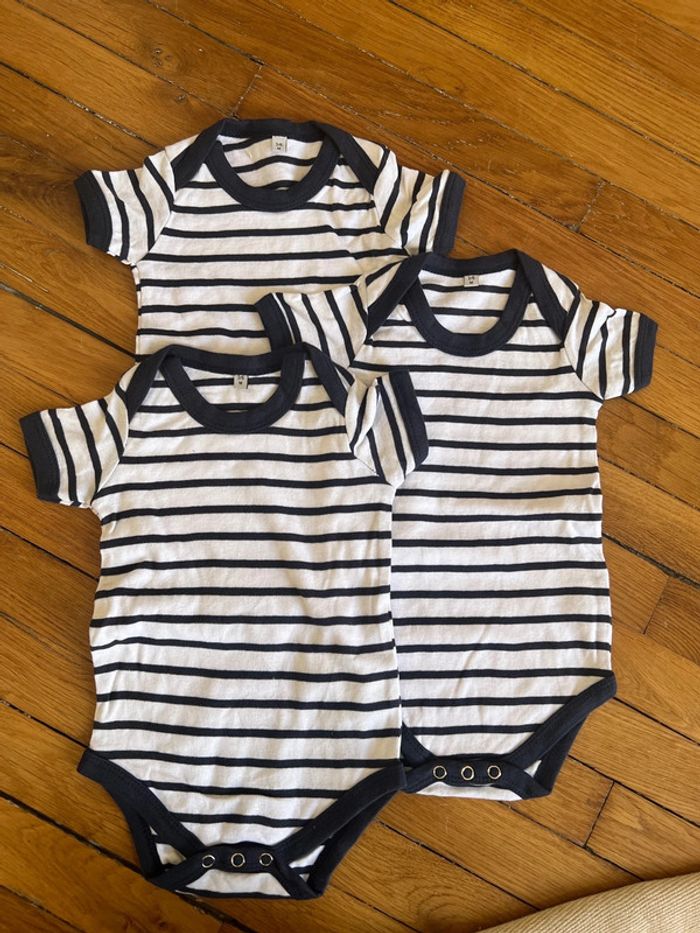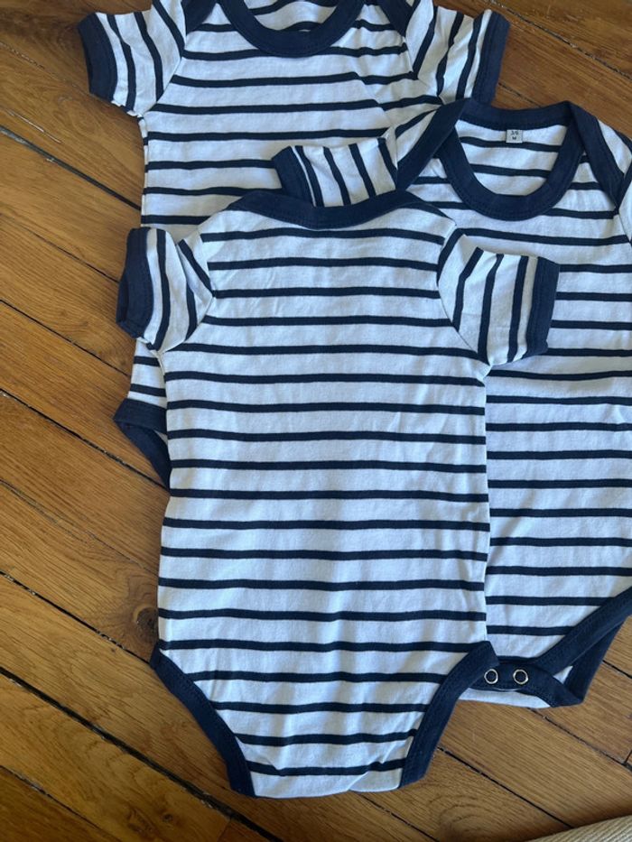 Lot 3 bodies Marinière neufs Jamais portés ni lavés Coton bio 3-6 mois Manches courtes