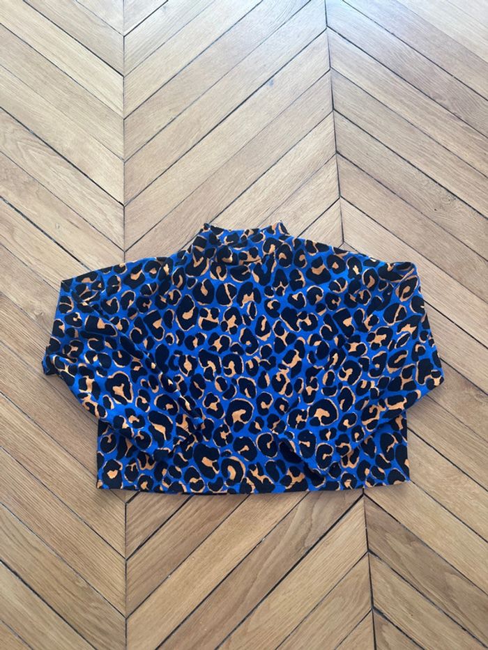 Pull Léopard Zara crop S Magnifique orange bleu et noir Excellent état