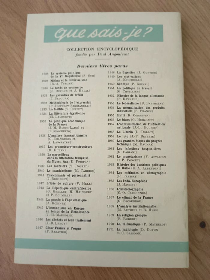 Livre de poche en bon état Couverture un peu abimée et un peu décolorée Collection Que sais-je? n°1085 2e trimestre 1981 6e édition 128 pages Réf EM2005-PC1