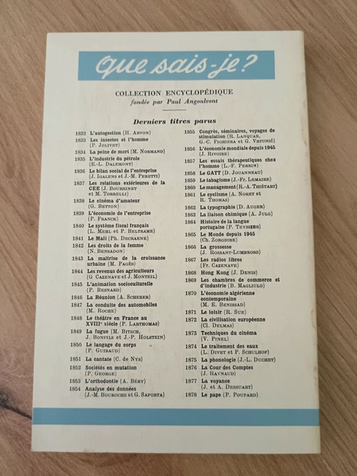 Livre de poche en bon état Couverture un peu décolorée et frottée Collection Que sais-je? n°1352 3e trimestre 1980 2e édition 128 pages Ref EM2002-PS3