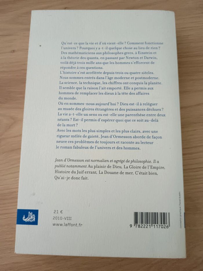 Livre grand format en bon état Couverture un peu tachée Tranches légèrement salies Ed. Robert Laffont Août 2010 308 pages Ref/B392-GFO2
