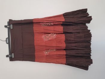 Jupe fluide longue etiquette taille M mais va aussi à un 40 bon état Vieux rose reflets argentés Ceinture argentée Doublure élastique