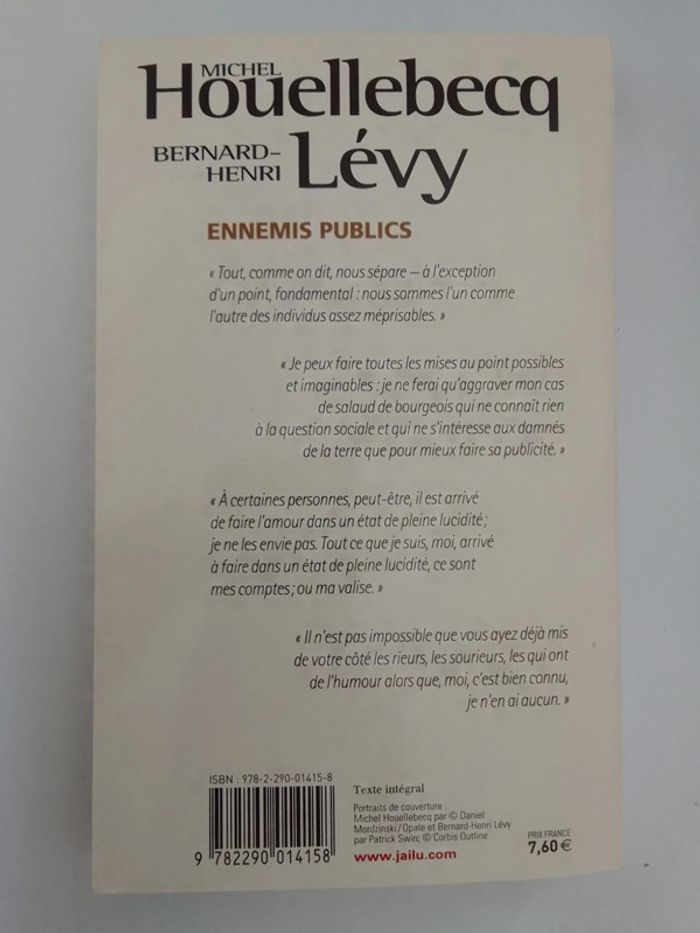 Michel Houellebecq / Bernard-Henri Lévy - Ennemis publics
