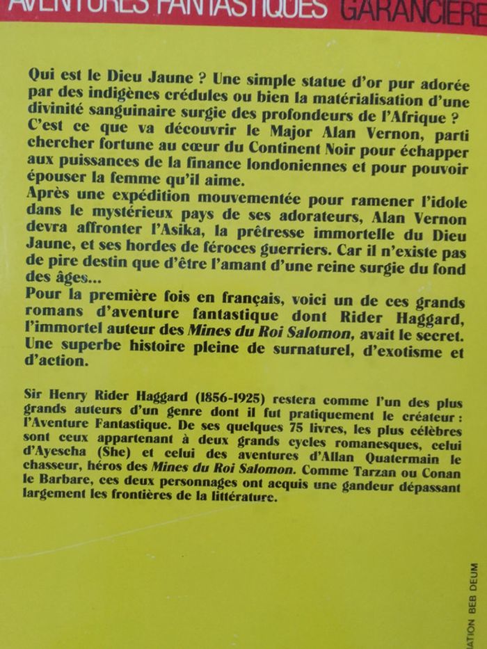 Sir H. Rider Haggard - Le dieu jaune - photo numéro 3