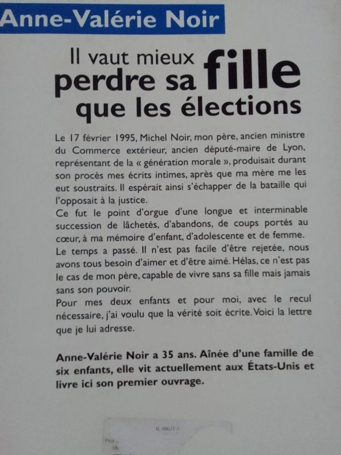 Anne-Valérie Noir - Il vos mieux perdre sa fille que les élections