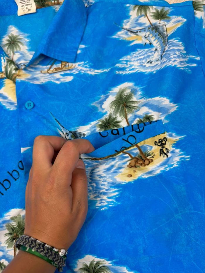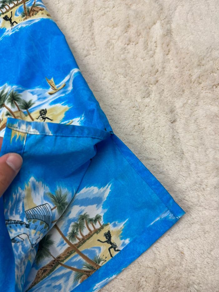 Chemise Vintage à motifs Style Hawaïenne Bleu Clair Taille M - photo numéro 4